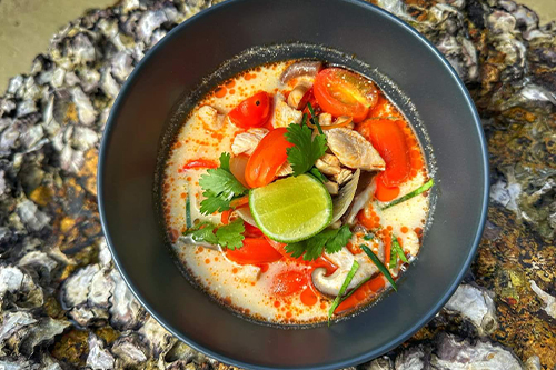 Coconut milk, vibrant herbs, chicken/shrimp, creating a blend of spicy, sweet, and savoury flavours add rice for 30